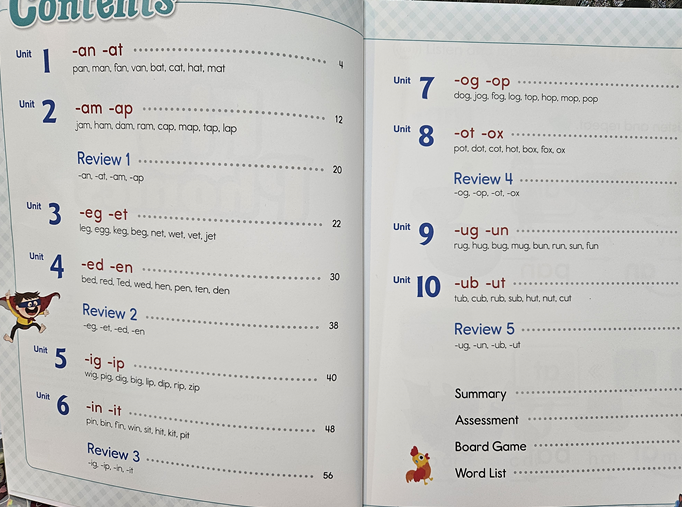 ✔️ 유닛 1: -an, -at / 유닛 2: -am, -ap / 유닛 3: -eg, -et 등